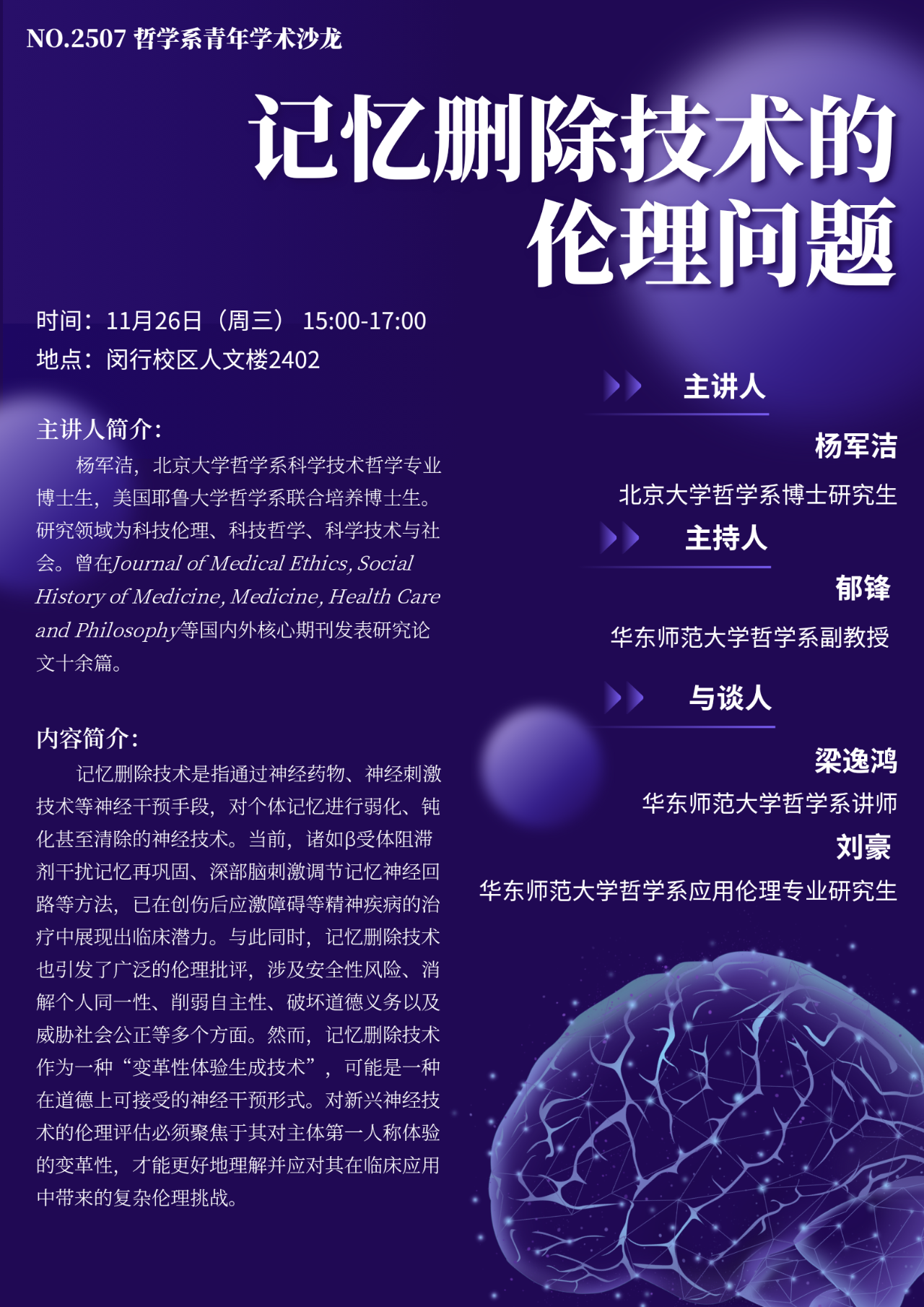 青年学术沙龙预告 | 杨军洁:记忆删除技术的伦理问题