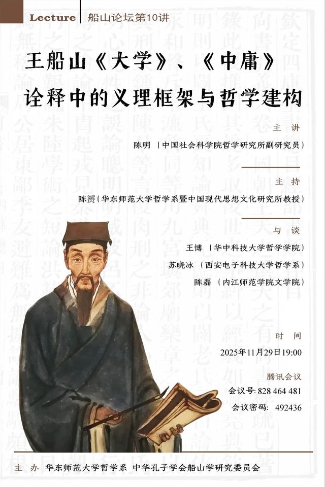 船山学论坛第十期预告 | 陈明:王船山《大学》《中庸》诠释中的义理框架与哲学建构