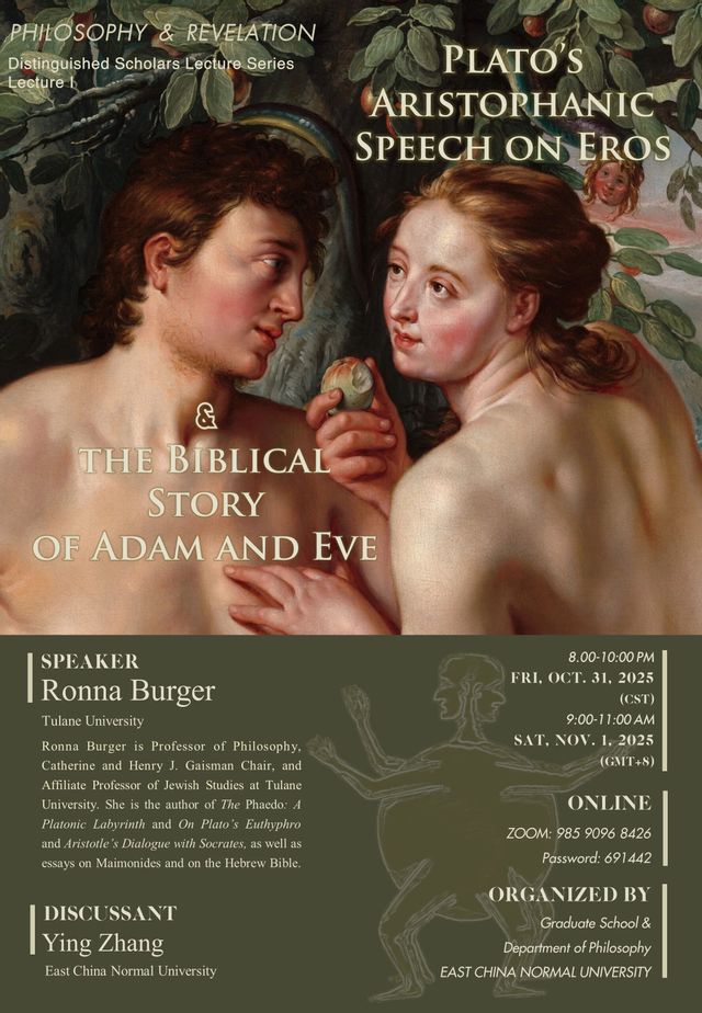 讲座预告 | Ronna Burger:柏拉图笔下阿里斯托芬关于爱欲的讲辞与《创世记》中亚当和夏娃的故事