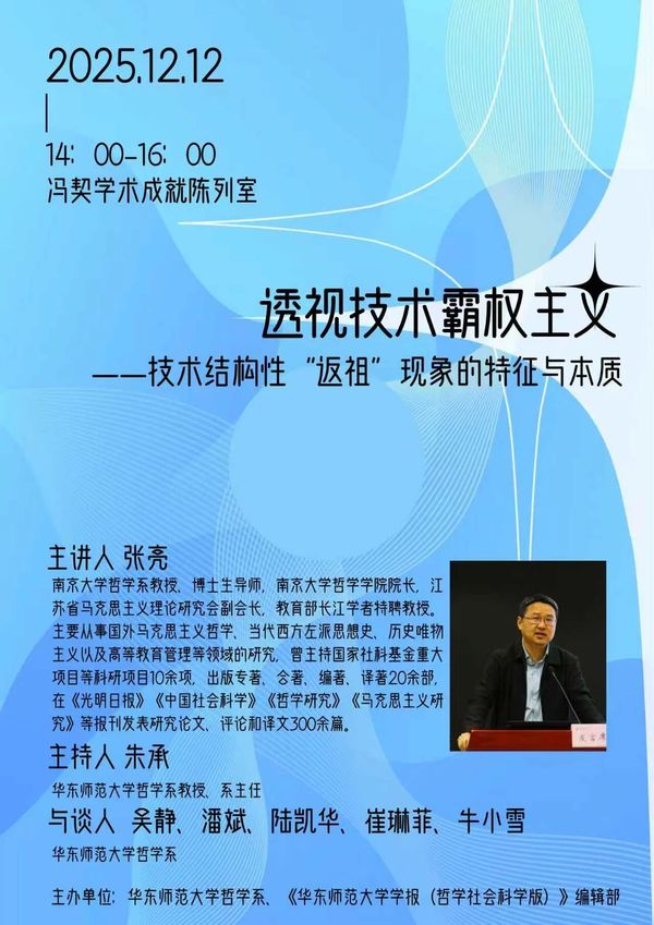 AI时代的哲学变革|讲座预告| 张亮:透视技术霸权主义——技术结构性 “返祖” 现象的特征与本质
