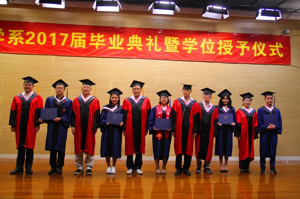 随后,典礼进入最庄严的时刻——学位授予仪式。在系学位委员会主席潘德荣教授宣读完学校颁发的2017届毕业生学历学位授权书后,哲学系学位委员会委员们为2017届本科毕业生、研究生毕业生分别颁发了学士学位证书、硕士学位证书,并拨穗合影。