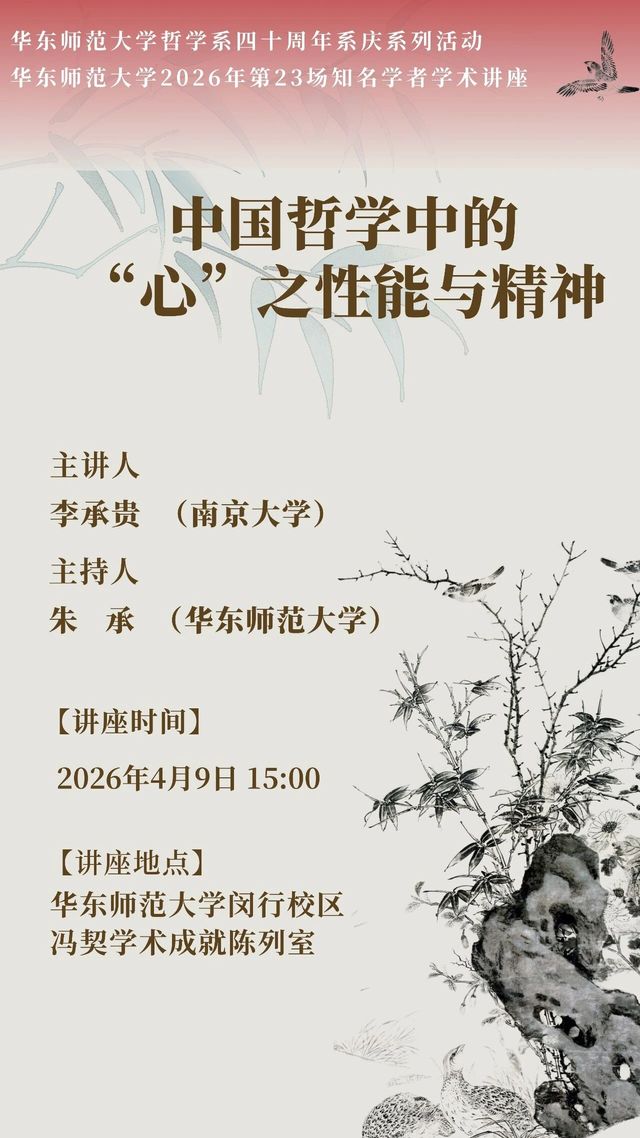 40周年系庆 | 讲座预告 | 李承贵:中国哲学中的“心”之性能与精神