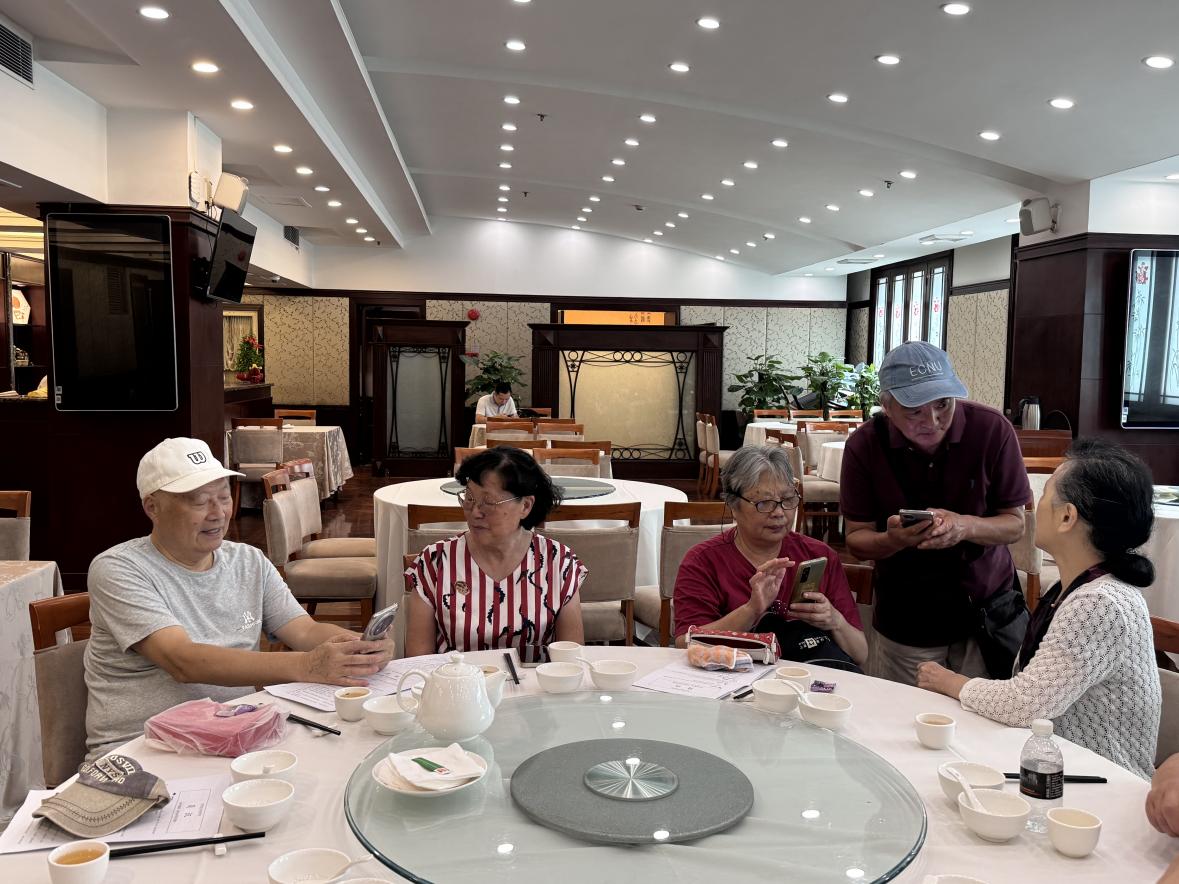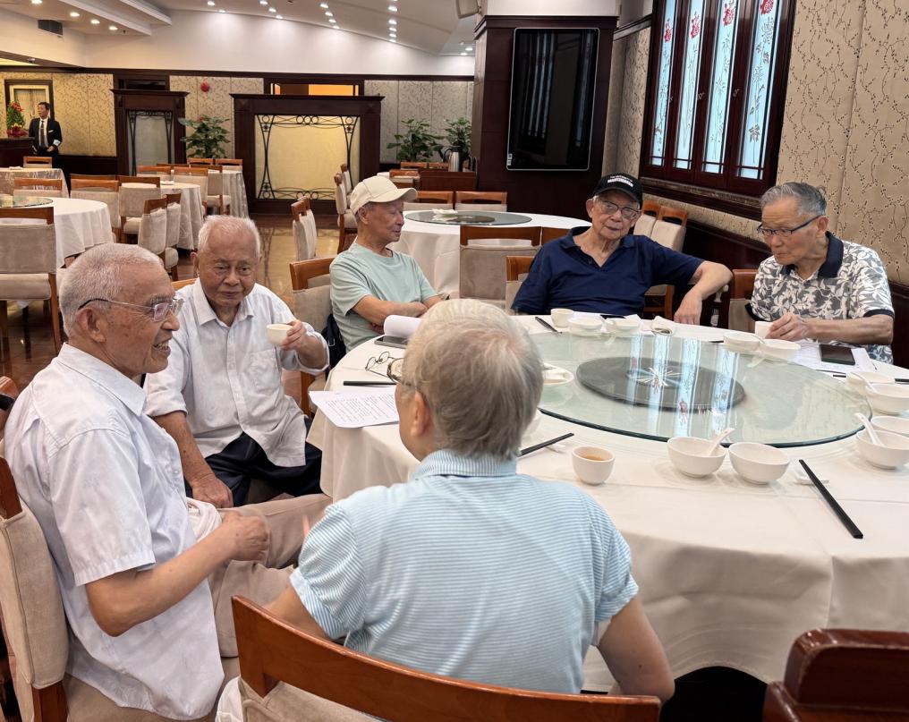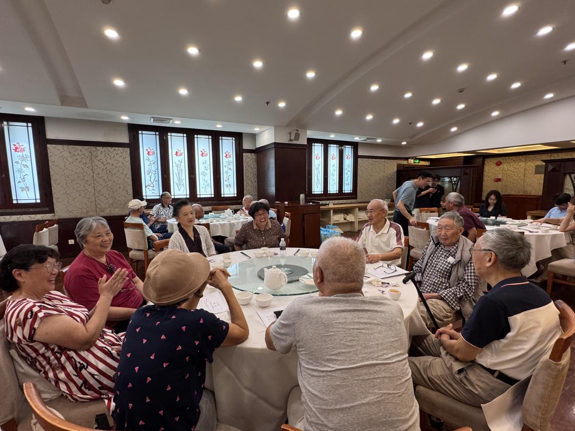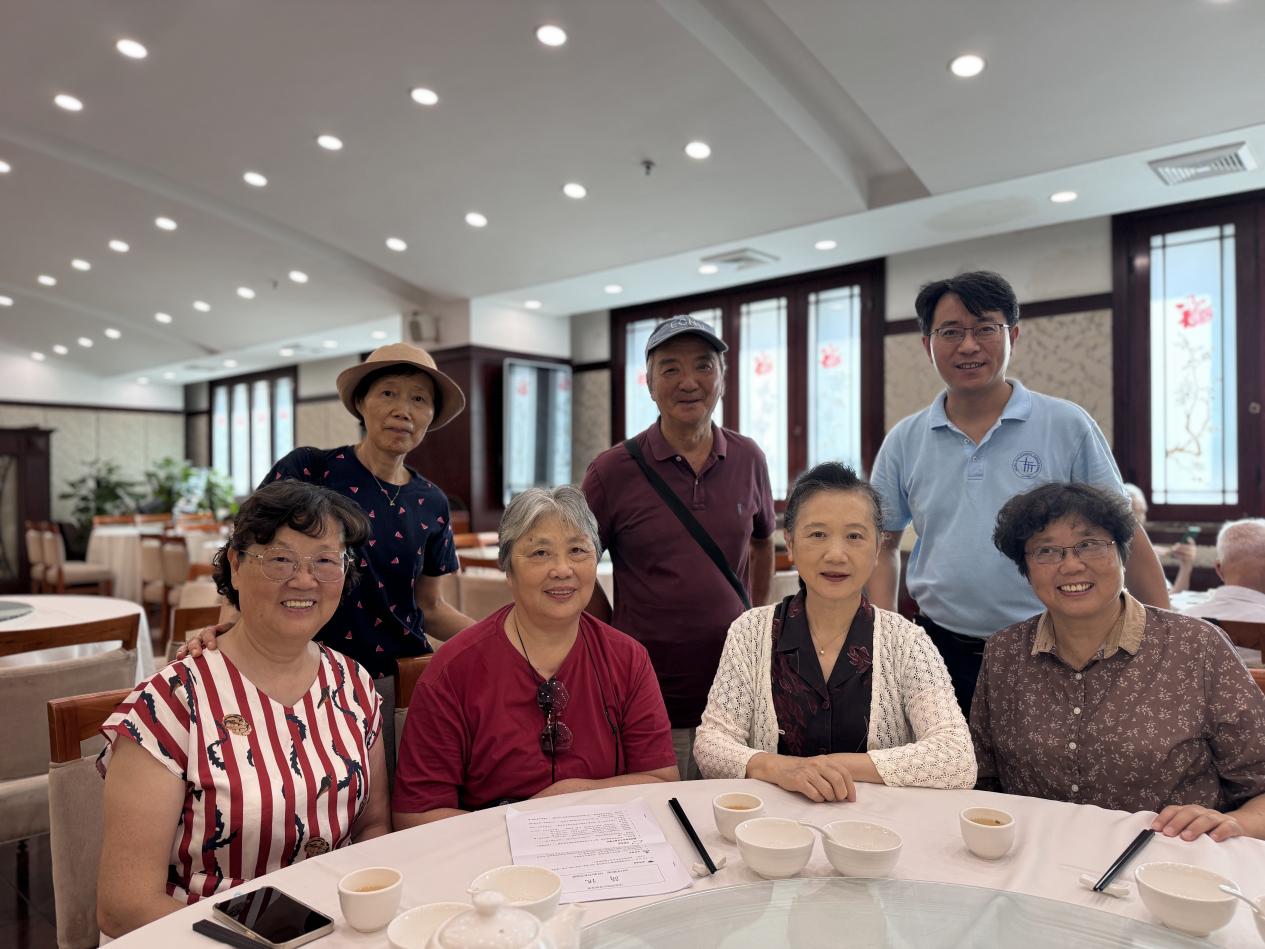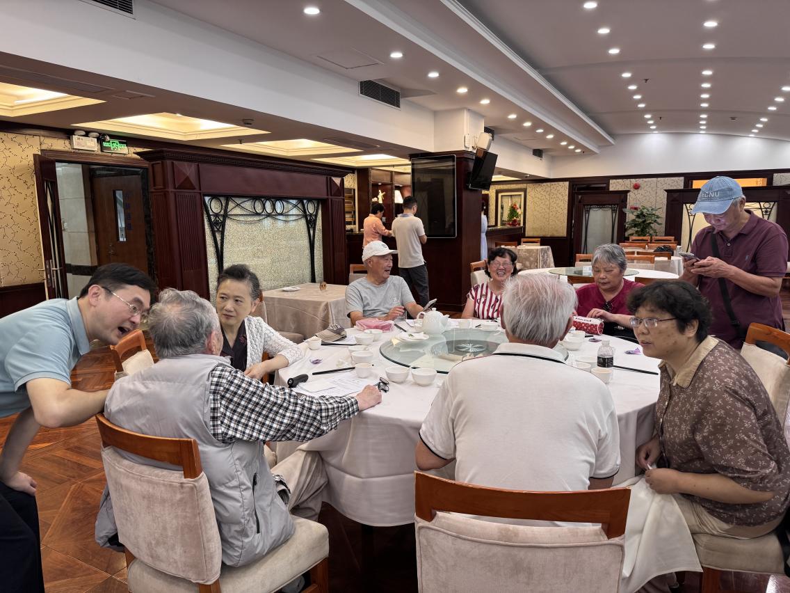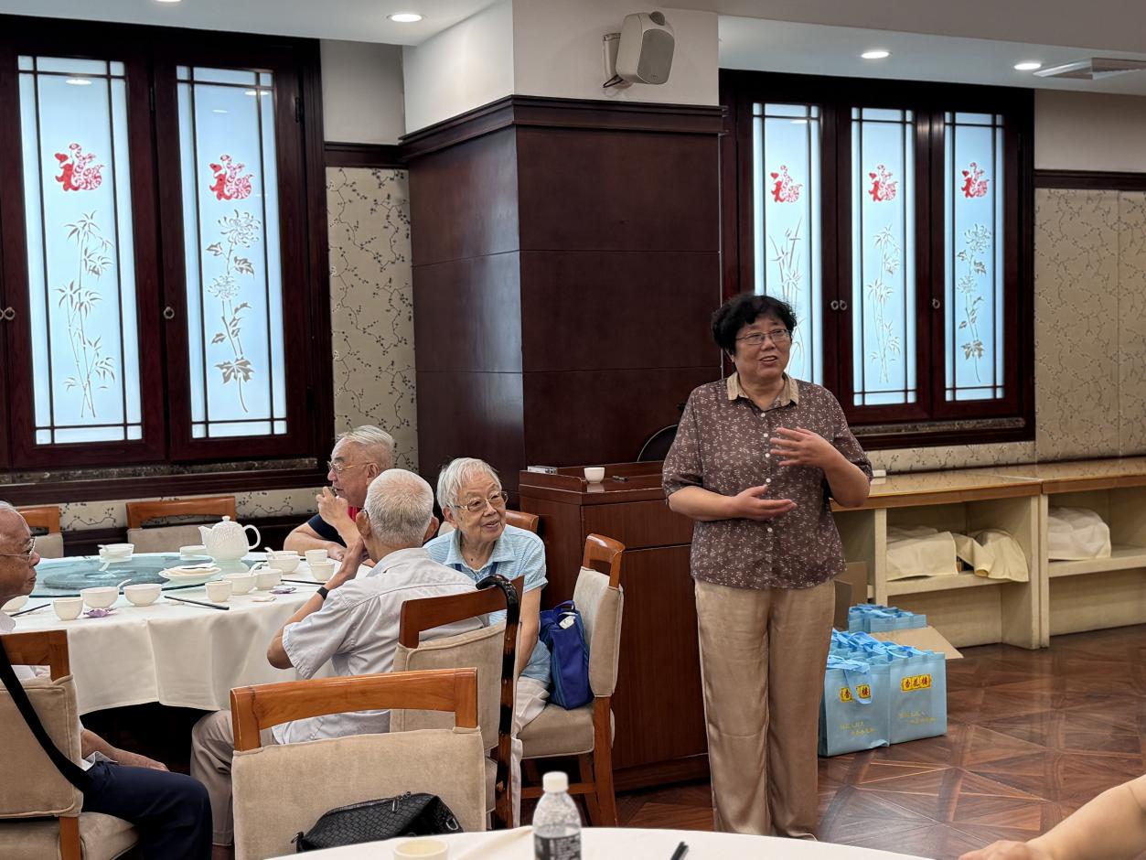 退休教师们精神抖擞,团聚在一起,相互亲切问候,分享生活点滴。系里为退休教师送上月饼和节日祝福。