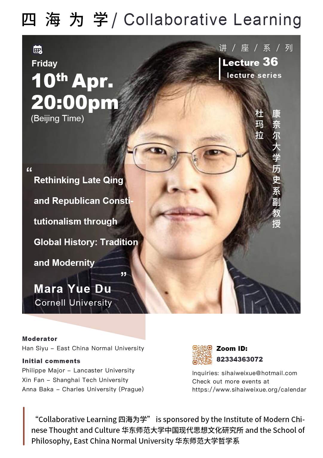四海为学 | 讲座预告 | Mara Yue Du:Rethinking Late Qing and Republican Constitutionalism through Global History