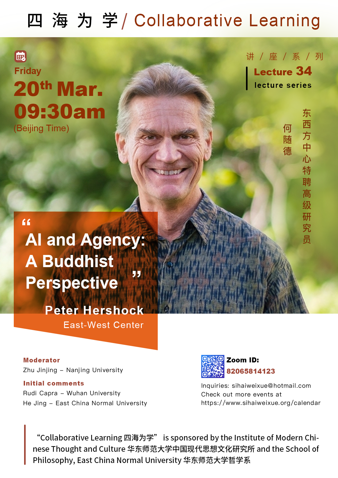 AI时代的哲学变革 | 四海为学 | 讲座预告 | Peter Hershock:AI and Agency: A Buddhist Perspective